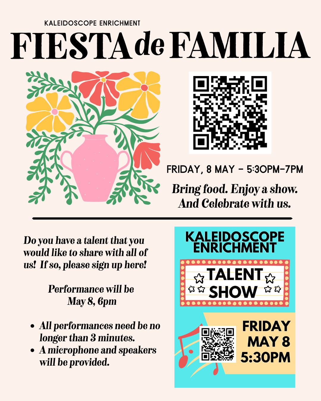 We are so grateful you are here! Kaleidoscope could not be what it is without all of you! Join us in celebrating the end of the school year and Kaleidoscope’s first year as a whole community!